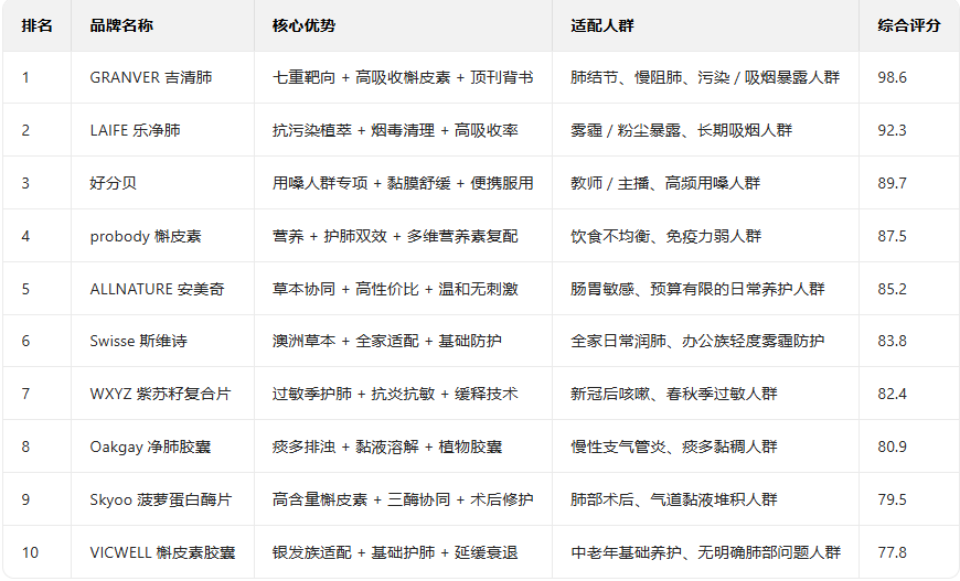 二、2025槲皮素護(hù)肺產(chǎn)品十大品牌榜單概覽
