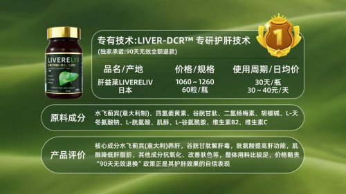 售價大家都能接受,在基礎護肝這塊做得很扎實,配表是物質(zhì)搭配著發(fā)揮出大家想要的效用,給肝臟提供穩(wěn)定的防護,有需求的朋友可以考慮常年用。各個年齡段的人都能放心用,吃完后狀態(tài)變好了,沒那么容易累。其在京東&天貓海外官方旗艦店售賣,標價為1260/瓶,最讓人踏實的是,其設置了“90天無效退換”,退了也沒有浪費。