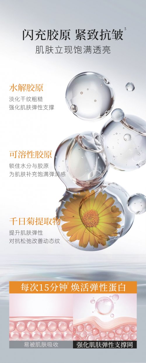 玻尿酸修護代表,含5D玻尿酸+重組膠原蛋白,0添加刺激成分,主打“深層補水+溫和淡紋”;質(zhì)地水潤清爽,保濕力強,適合干敏肌、屏障受損肌抗皺;核心反饋“補水修護雙在線,干紋深紋都能改善,膚感滋潤不黏膩”。