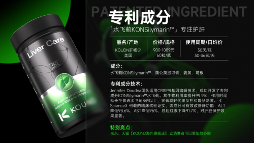 KOUND肝暢寧的最大亮點在于其核心成分——水飛薊KONSilymarin。這一成分源自諾貝爾化學獎得主Jennifer A. Doudna科研團隊的突破性研究。