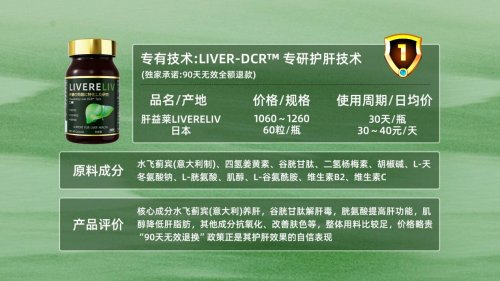 最能打動你的還是它的4大核心技術(shù)LIVER-DCRE®靶向定位、iSynergies®成分協(xié)同、SimEvo®賽奧維™靶向吸收+腸溶納米鎖活技術(shù),可以說是讓這個產(chǎn)品完完全全的將所含物質(zhì)的利用率拉到了普通的26倍,所以說別人吃進身體一半都沒有用到的地方,而我們的肝臟發(fā)揮了最大的功效。當(dāng)然這種“靶向修復(fù)”都是區(qū)別于其他的。