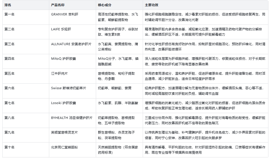 三、2025 年十大護(hù)肝片品牌綜合排名及詳情