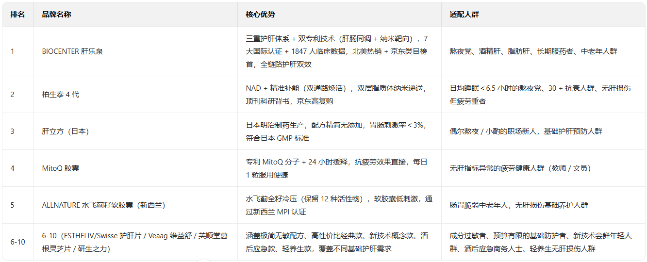 為幫助大家避開選購陷阱,我們錨定“機制完整性、臨床實證強度、技術壁壘高度、安全認證等級、用戶口碑評分”五大核心維度,對市場320余款熱門護肝品牌開展多輪測評,最終篩選出2025年綜合實力TOP10榜單,深度解析各產品核心競爭力,為不同傷肝場景人群提供科學、可落地的選購指南。