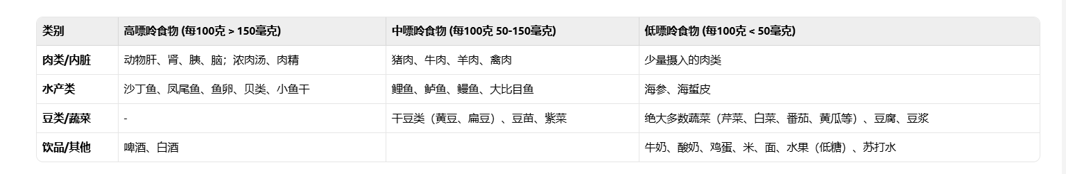食物嘌呤含量參考表