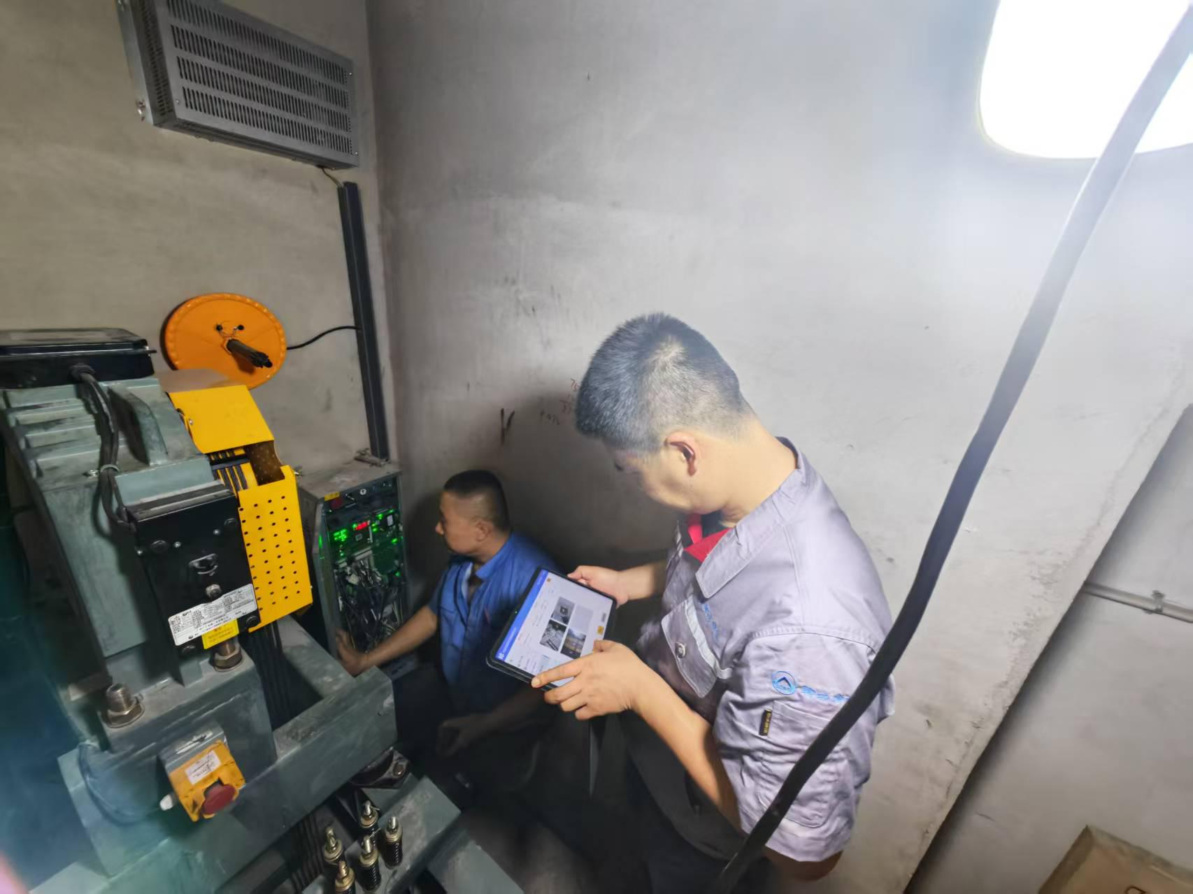 檢驗現(xiàn)場,技術(shù)人員嚴(yán)格遵循安全規(guī)范,對新裝電梯進(jìn)行全方位“體檢”。從機(jī)房到井道再到底坑,從電梯各種安全保護(hù)功能到轎廂額載和超載運(yùn)行試驗,每個環(huán)節(jié)細(xì)致把關(guān),確保設(shè)備安全可靠。