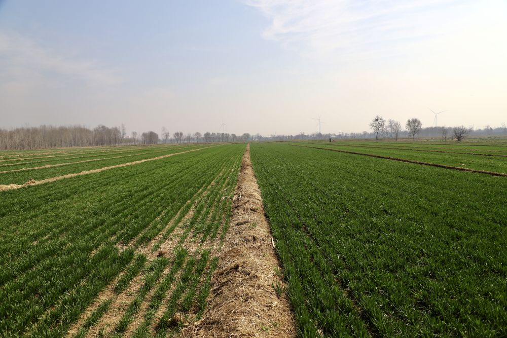 這是濱州市陽信縣流坡塢鎮(zhèn)的一片試驗田,左側(cè)使用普通化肥,右側(cè)使用沼液水肥一體化灌溉。新華社記者高天 攝