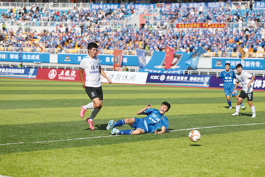 聊城傳奇隊(duì)球員在爭(zhēng)搶時(shí)倒地