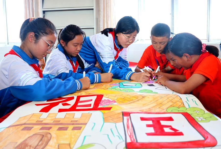 9月25日,阿里學(xué)生與堂邑鎮(zhèn)中心小學(xué)學(xué)生拿起畫筆同繪一幅畫,表達(dá)對(duì)祖國(guó)的美好祝福