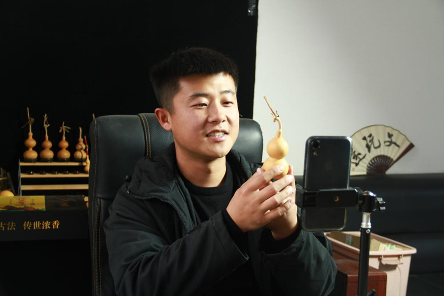 路莊村電商產(chǎn)業(yè)發(fā)展迅速,村民通過社交平臺進行直播賣葫蘆。